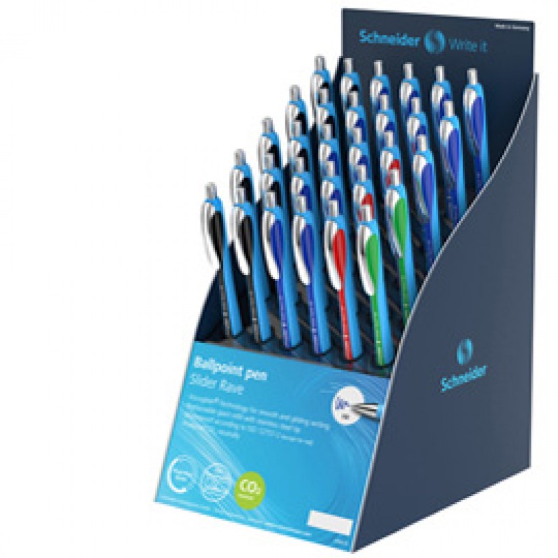 Penna sfera Slider Rave - colori assortiti (blu/nero/rosso/verde) - Schneider - expo 30 pezzi