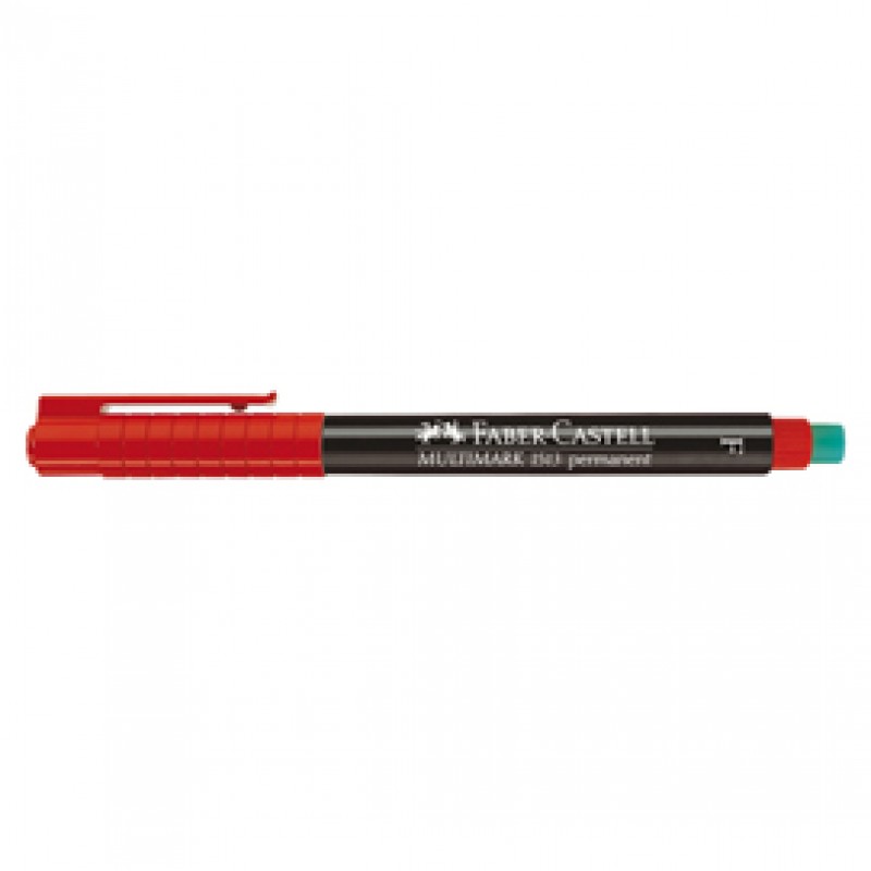 Pennarello Multimark universale permanente con gomma - rosso - punta fine 0,6mm - Faber Castell