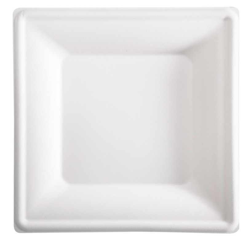 Piatto piano monouso - quadrato - 26 x 26 cm - canna da zucchero - bianco - Signor Bio - conf. 50 pezzi