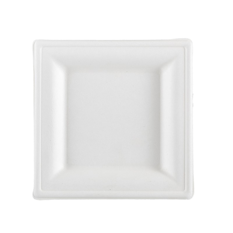 Piatto piano monouso - quadrato - 16 x 16 cm - canna da zucchero - bianco - Signor Bio - conf. 50 pezzi