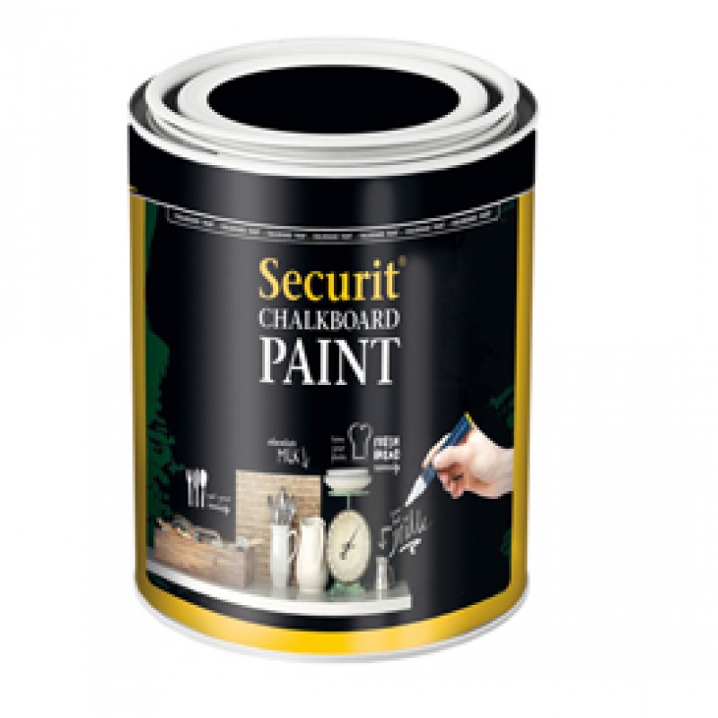 La pittura lavagna è una vernice nera da applicare su pareti o su oggetti per trasformarne la superficie in una lavagna. Può essere utilizzata su tutte le superfici che diventeranno in questo modo scrivibili con: gesso classico o gesso liquido (ideale per una cucina o un ristorante per scrivere un grande menu su una parete, basterà cancellarlo con un panno bagnato). La pittura può essere applicata anche all’esterno, se utilizzata con il gesso liquido resistente all’acqua, per avere superfici su cui comunicare resistenti alla pioggia. Per la rimozione delle scritte serve lo spray Securit (cod. 77386).