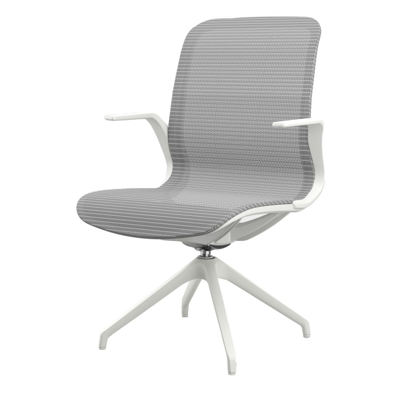 Poltrona direzionale girevole con meccanismo oscillante - base 4 gambe nylon. Rivestimento seduta in rete bianca. Braccioli inclusi (non rimovibili). Alt.tot.: 95cm; Prof.tot.: 66cm; Alt.schienale: 51cm; Larg.schienale: 46cm; Larg.seduta: 49cm; Prof.Sedile: 46cm; Altezza sedile: 49cm.
