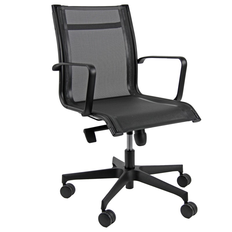 Poltrona direzionale girevole con elevazione a gas - meccanismo oscillante con blocchi. Braccioli inclusi (non rimovibili). Rivestimento seduta in rete di colore nero. Alt.tot.: 79-90cm; Prof.tot.: 68cm; Alt.schienale: 41cm; Larg.schienale: 48cm; Larg.seduta: 50cm; Prof.Sedile: 50cm.