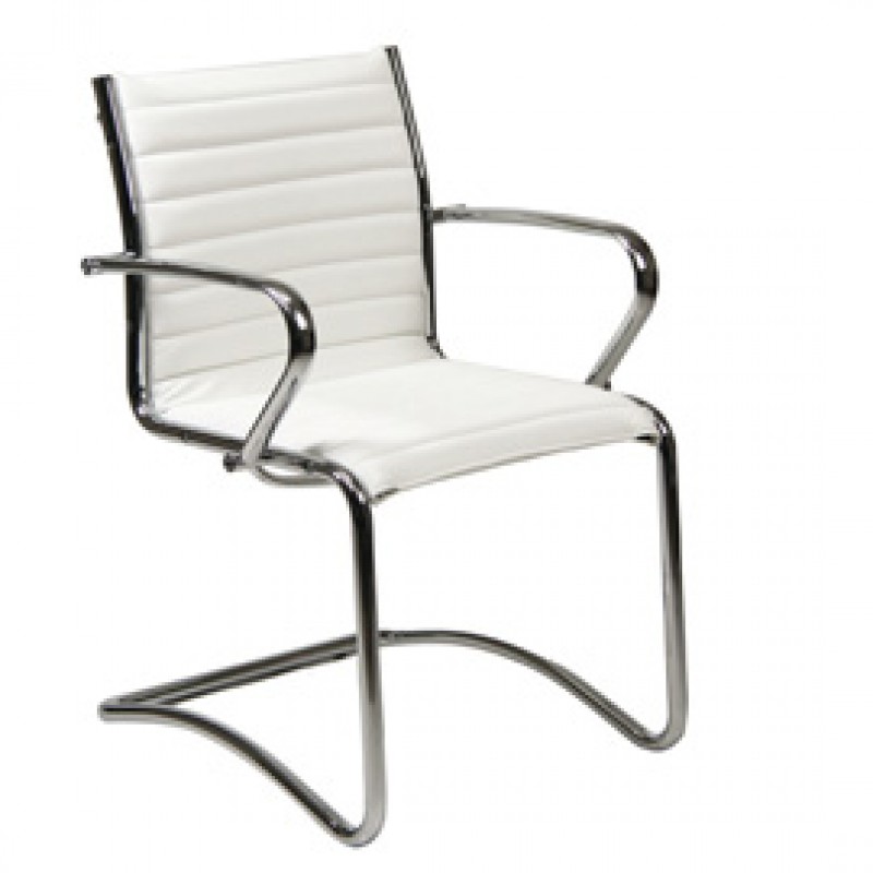 Poltrona direzionale girevole con elevazione a gas - meccanismo oscillante con blocco. Rivestimento seduta in tessuto "TOP - vera pelle smerigliata".Schienale basso su slitta tubolare. Braccioli in acciaio cromato inclusi (non rimovibili). Alt. tot: 79-90cm; Prof. tot: 68cm; Alt. schienale: 41cm; Largh. schienale: 48cm; Largh. sedile: 50cm; Prof. sedile: 50cm; Alt. sedile: 42-54cm.