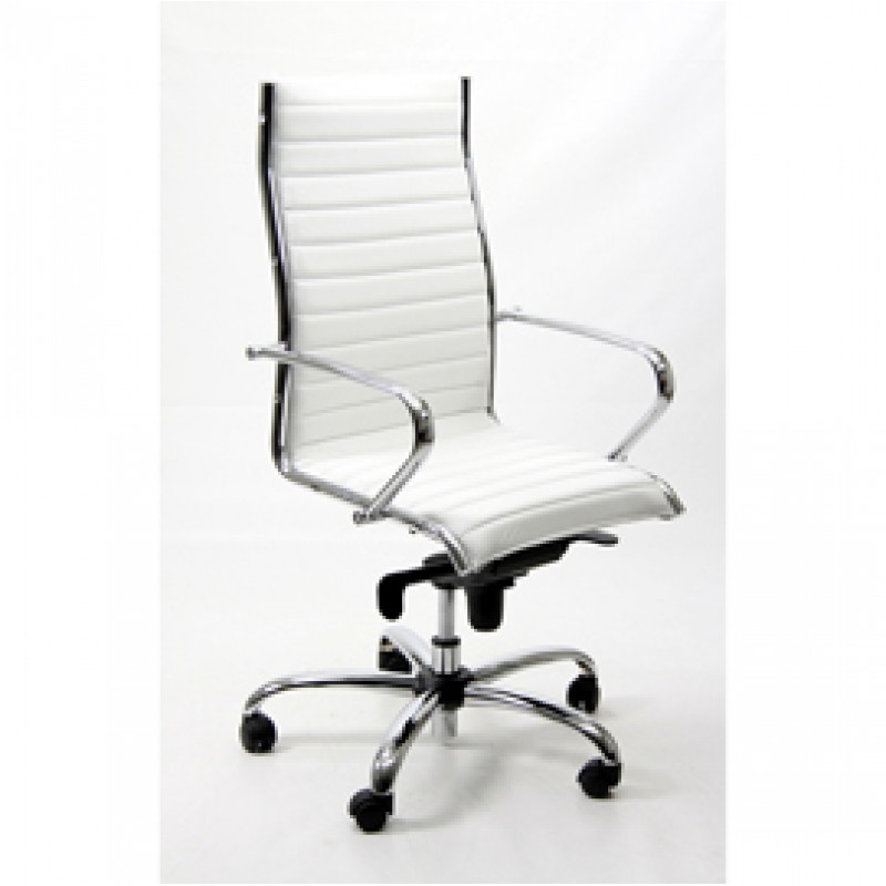 Poltrona direzionale con schienale alto. Struttura e braccioli in acciaio cromato, rivestimento in pelle. Base in acciao sezione ellittica. Meccanismo multiblock oscillante con fulcro avanzato, regolazione in altezza con pistone a gas (corsa 11cm). 16kg. Rivestimento seduta in tessuto "TOP - vera pelle smerigliata". Braccioli inclusi (non rimovibili). Altezza totale: 105-116cm; Profondità tot: 68cm; Alt. schienale: 60cm; Larghezza schienale: 48cm; Larghezza sedile:50cm; Profondità sedile: 50cm; Alt.sedile: 42-54cm.