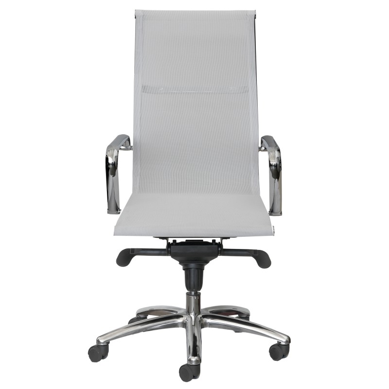 Poltrona direzionale adatta ad un uso intenso. Base in acciaio cromo Ø66cm. Struttura in acciaio tubolare ellittico cromo. 5 ruote in nylon Ø5cm. Sedile in rete. Braccioli inclusi (non rimovibili). Meccanismi: elevazione a gas, meccanismo oscillante con blocchi. Schienale fisso con supporto lombare. Altezza totale: 109-119cm; Profondità tot: 66cm; Alt. schienale: 53cm; Larghezza schienale: 46cm; Larghezza sedile:48cm; Profondità sedile: 45cm. Portata massima:110kg. Garanzia: 2 anni.