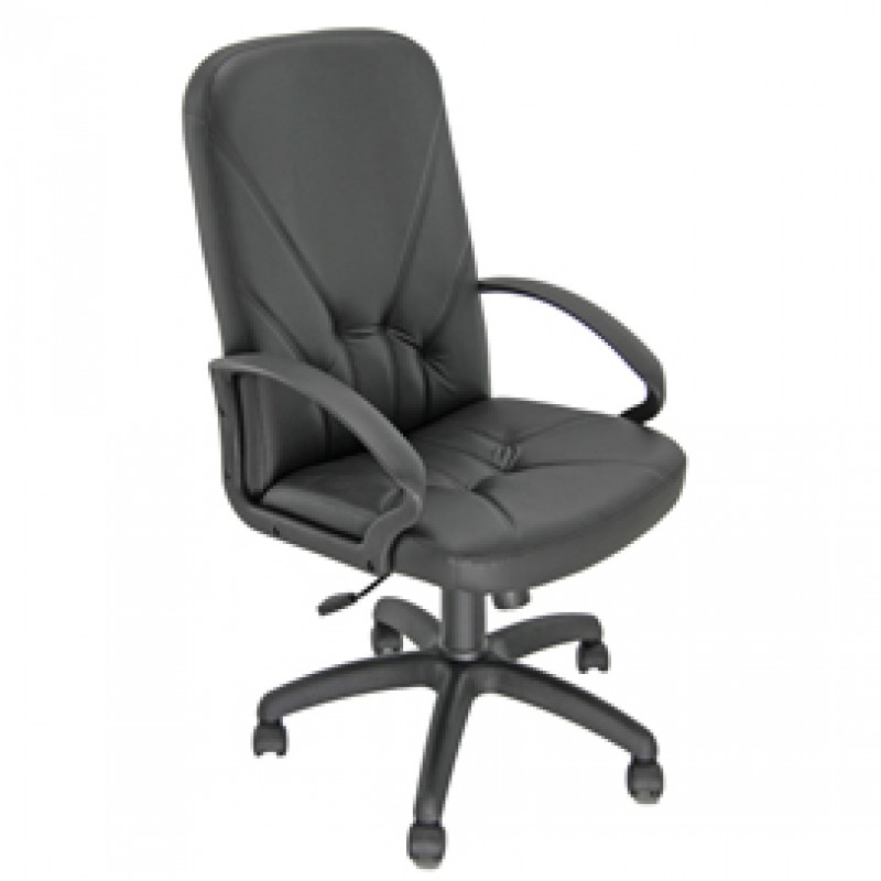 Poltrona in similpelle colore nero con schienale alto. Braccioli e base con ruote in nylon. Meccanismo oscillante con blocchi. Schienale fisso. Elevazione a gas.