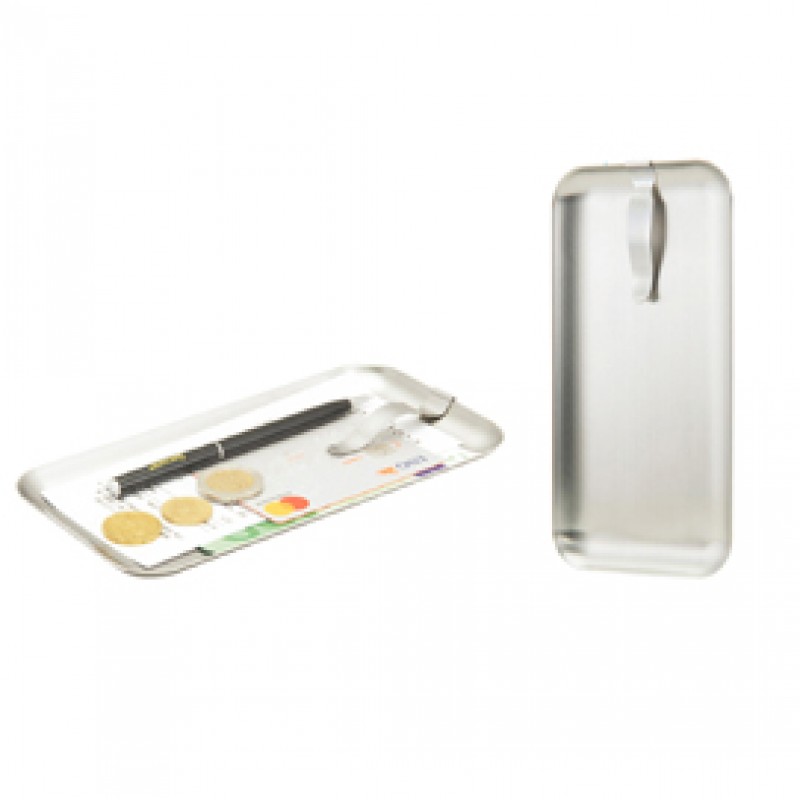 Portaconto in acciaio spazzolato con linguetta ferma soldi e scontrino. Dimensioni: 28,5x9cm.