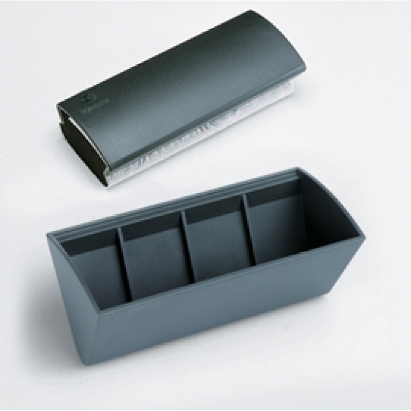 Porta marcatori con coperchio che funge anche da cancellino. Sia il contenitore che il cancellino sono magnetici. Fornito vuoto.