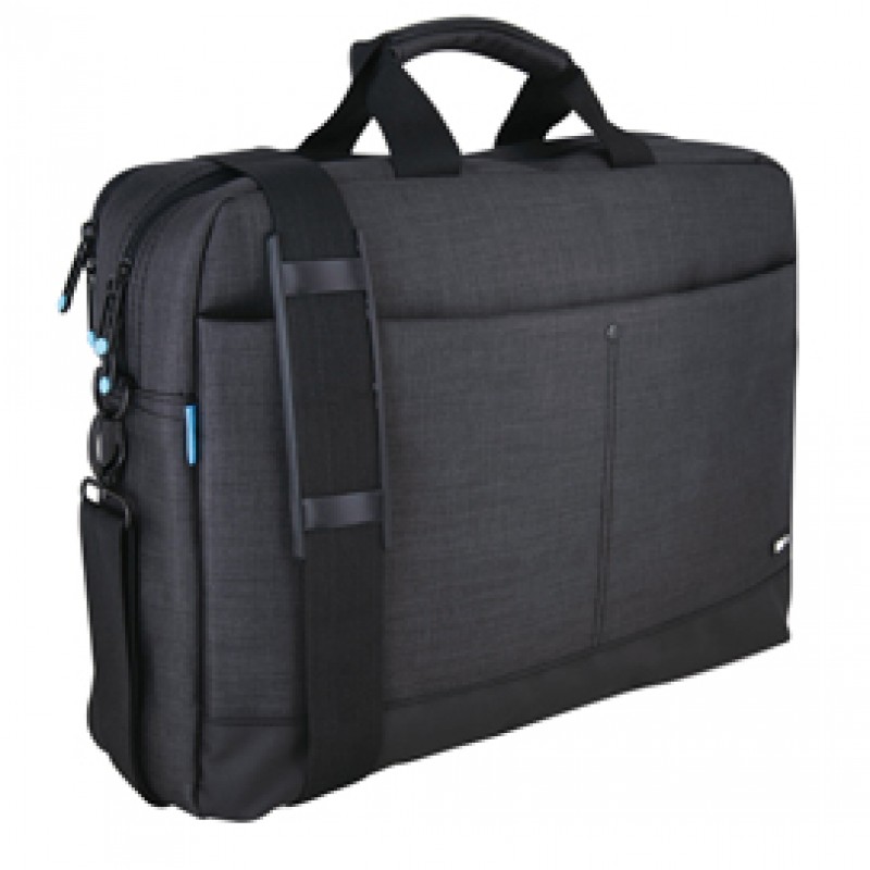 Porta-notebook in polyestere e pu antigraffio e antipioggia. Doppio scomparto con divisorio imbottito, pota pc-tablet 17.1", tasca frontale con cerniera, fasca per trolley e tracolla regolabile.