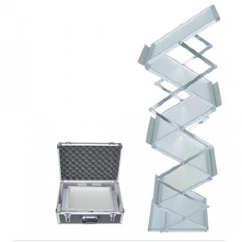 Espositore ideale per essere trasportato, poichÚ ripiegabile. realizzato in alluminio anodizzato con..