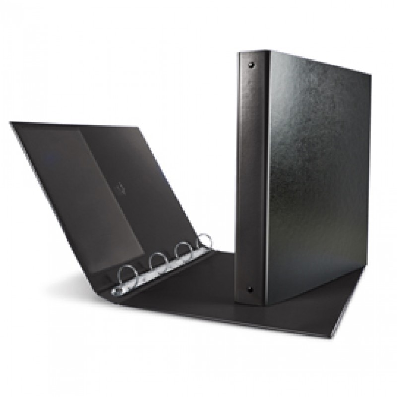 Raccoglitori in Stratopan®-P (cartone interamente rivestito in PP) con meccanismo a 4 anelli tondi da 30mm e tasca interna. Formato esterno: 275x320mm. Formato contenuto: 220x300mm(A4). Dorso 35mm.
