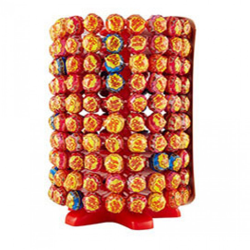 Ingredienti (gusti fragola. arancia): zucchero. sciroppo di glucosio. polpa e succo di frutta (3%) (mela. ciliegia. lampone. ananas. lime. limone. fragola. pesca. banana. arancia. mirtillo. mora. mango. anguria. kiwi). acidificanti: acido lattico. acido malico. acido citrico; aromi. coloranti: E162. E160c. Ingredienti (gusto cola): zucchero. sciroppo di glucosio. acidificanti: acido lattico. acido malico. acido citrico; aromi. colorante: E150d. Ingredienti (aroma panna-fragola): sciroppo di glucosio. zucchero. permeato di siero di LATTE. polpa e anguria. kiwi). LATTE intero in polvere (2%). burro di cacao. colorante: E162. aromi.
