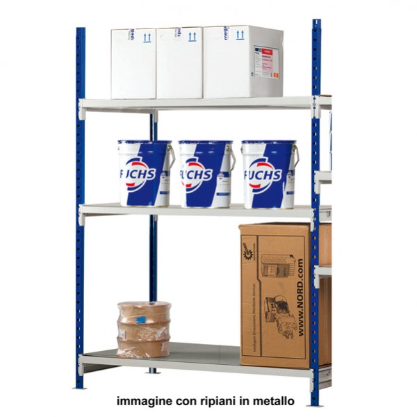 Modulo aggiunta per scaffale da magazzino Rang'Eco300 (cod. OD 68254) regolabile e ad alta capacità con sistema di montaggio a incastro, senza alcun attrezzo. In acciaio 15/10 e verniciatura epossidica. Piedi preforati per eventuale fissaggio a pavimento. Rinforzi in acciaio 12/10 alla base della struttura. Portata massima 300kg per ripiano. Altezza 2 metri, larghezza 1 metro, profondità 60cm. Set 3 copri ripiani in metallo cod. OD 68256). Garanzia 5 anni.