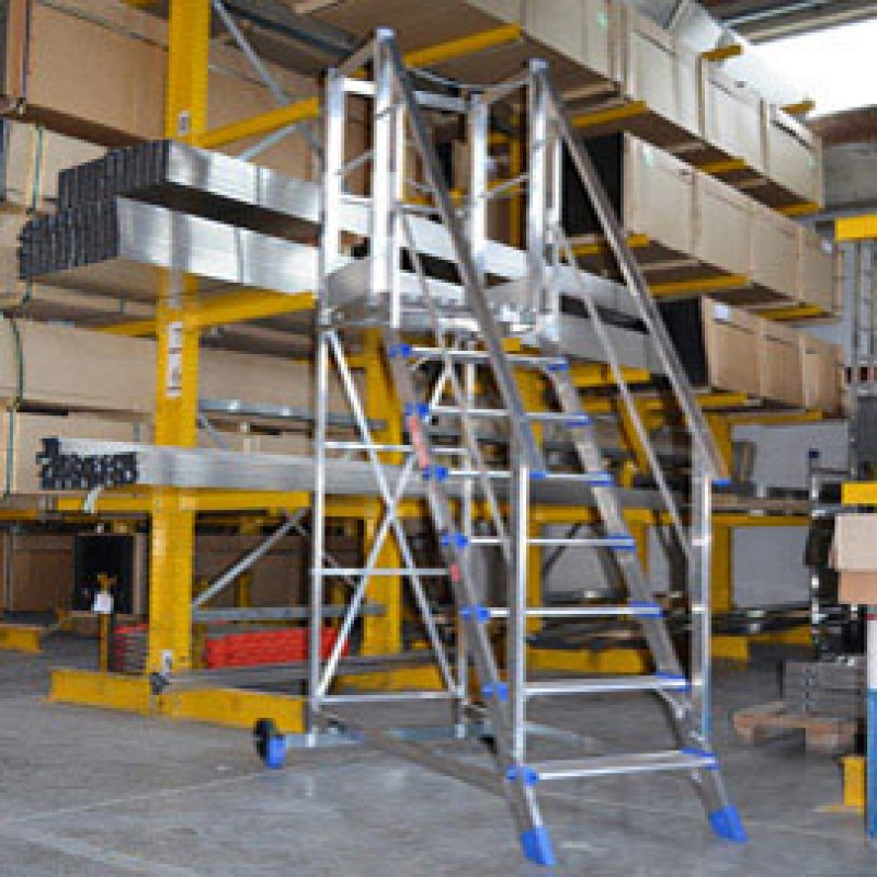Fortezza è una scala richiudibile con un'ampia piattaforma di lavoro 760x440mm, un parapetto di 1 mt e maniglioni laterali in alluminio per salire in sicurezza. Le ruote di diametro 175mm ed i maniglioni laterali facilitano lo spostamento. La particolarità di Fortezza è di avere l'inclinazione del tronco posteriore di 88°: questo permette di avvicinare al massimo la scala all'area di lavoro. Per questo Fortezza è usata nei magazzini, biblioteche, cimiteri, casseri, aeroporti, macchinari speciali. Passo tra i gradini 280mm. Packaging in termoretraibile.