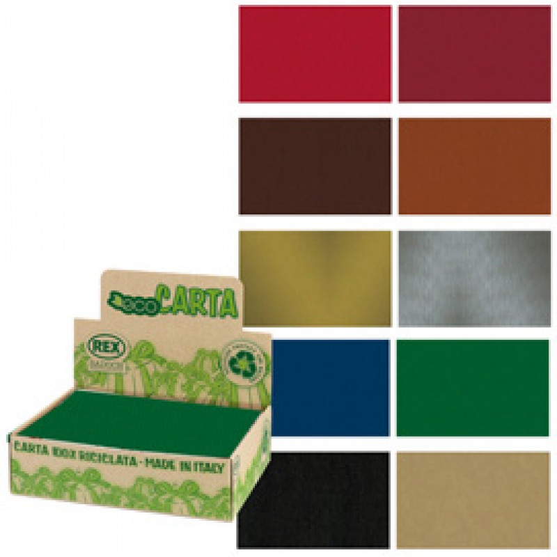 Scatola espositore da 100 fogli di carta kraft avana da 60gr. Fogli da 70x100cm in tinte unite scure.