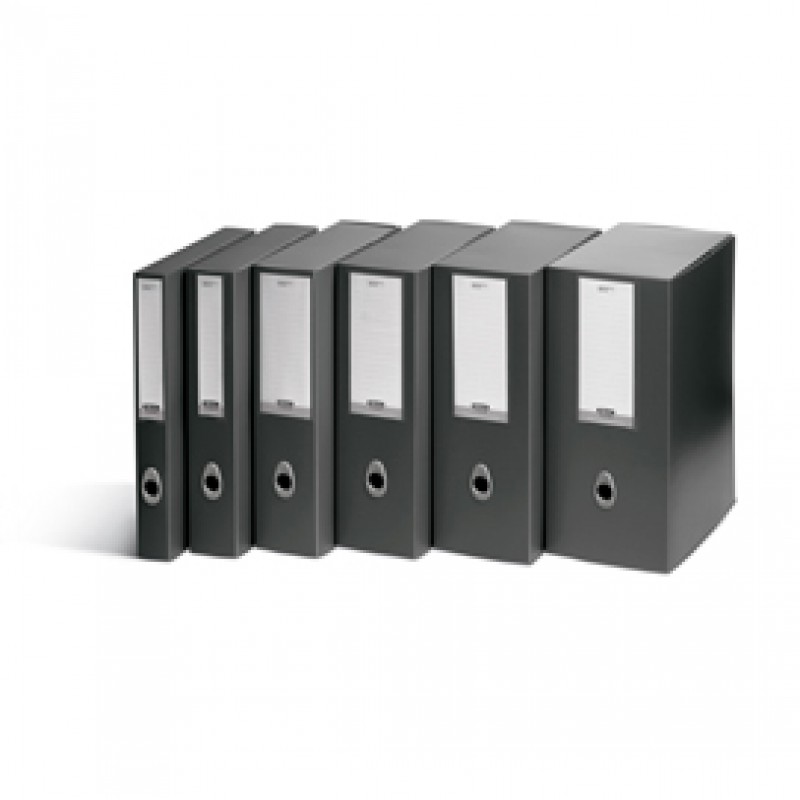 Scatola Progetto Plus Vip in polipropilene con chiusura esterna ed interna a bottone. Portaetichetta sul dorso con etichetta rimovibile. Occhiello di estrazione ergonomico. Formato utile 34,5x24,5cm.