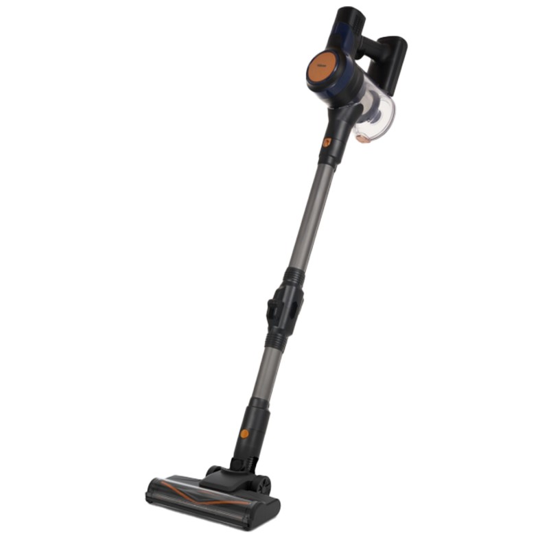 Aspirapolvere cordless ad alte prestazioni con motore (40 min di autonomia). Base di ricarica con montaggio a parete che permette anche di riporre gli accessori. Voltaggio batterie: 22,2V. Tempo di ricarica: 4,5ore. 2 velocità regolabili. Sacchetto polvere integrato (volume contenuto 800ml). Potenza: 150W. Pressione aria: 11,2 kPa. Fitro HEPA. Silenzioso 75dB. Spazzola e accessorio per fessure incluso. Svuotamento recipiente igienico.
