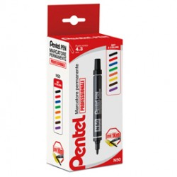 Astuccio 4 colori. Marcatore permanente con punta conica indicato per scrivere su quasi tutti i tip..