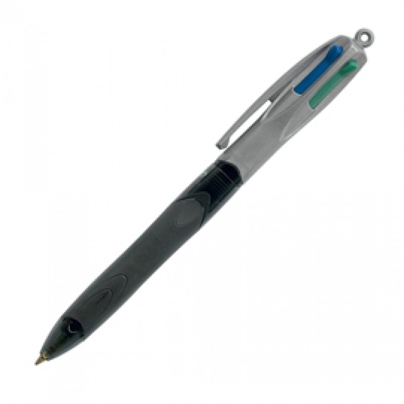 Fusto ergonomico in gomma. Pratico anello per aggancio. 4 colori di inchiostro (nero, blu, rosso, ve..