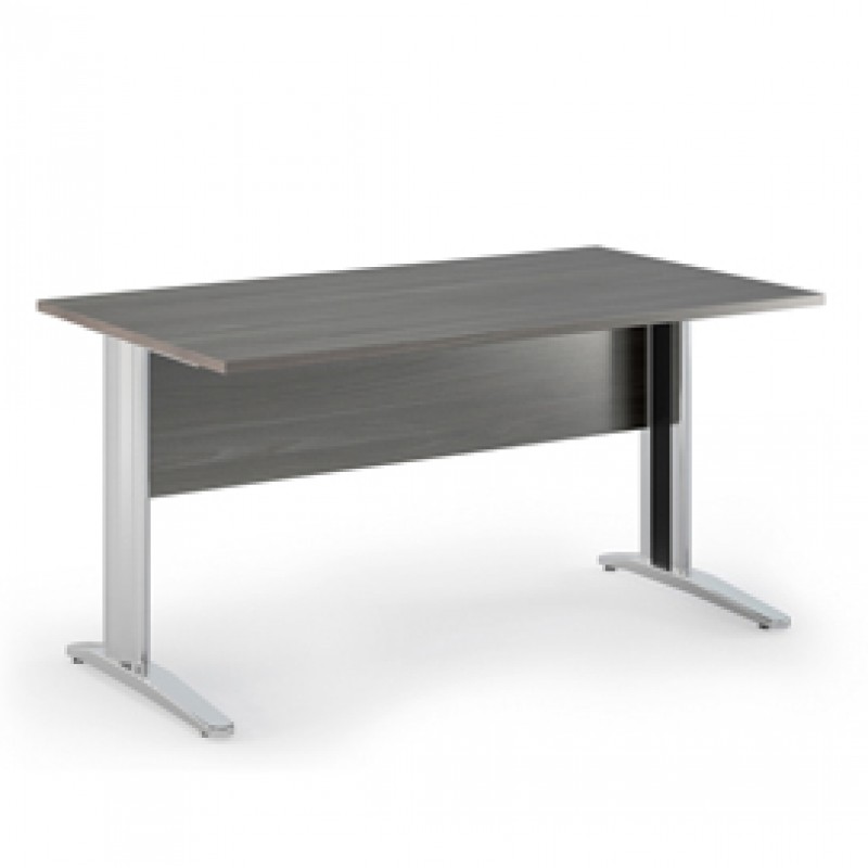 Scrivanie con dimensioni conformi alle normative sulla sicurezza dei posti di lavoro in ufficio. Bordatura dei piani in ABS 2mm antishock ed assenza di spigoli vivi. Le scrivanie sono disponibili nella versione con fianchi pannello in melaminico (sp. 22 mm) o con fianchi in metallo ad L verniciati effetto cromo completi di piedini regolabili in altezza e canalina passacavi ispezionabile. Dimensioni: L160 x P80 x H72cm