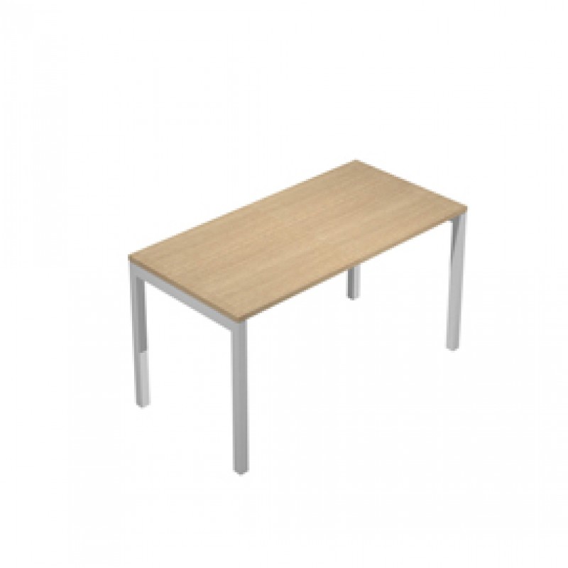 Scrivania per postazione singola dimensioni: L140 x P80 x H72,5cm. Le scrivanie per postazione singola o multipla, sono in bilaminato nobilitato melaminico conforme alle norme UNI e EN classe E1, antigraffio ed antiriflesso, hanno sp. 25 mm con bordo sp. 2 mm in ABS resistente agli urti. Sono caratterizzate da robuste gambe a ponte in metallo a sezione quadrata (50 x 50 mm) verniciate a polveri epossidiche nel colore grigio alluminio, complete di piedini regolabili in altezza.