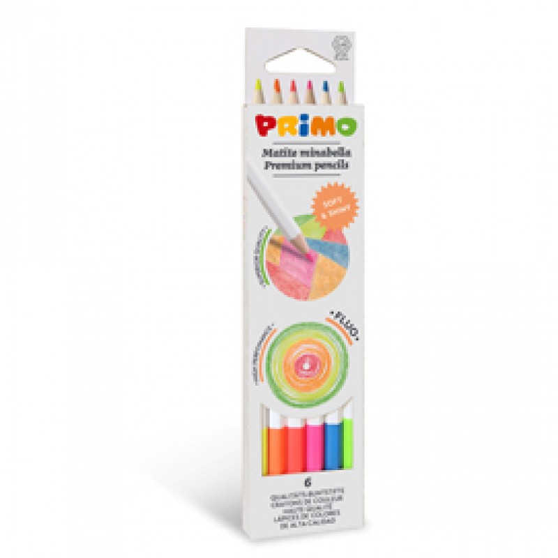 MINABELLA Fluo 6 matite colorate esagonali fluo laccate diam. 3,8mm in scatola di cartone. Certificate FSC.