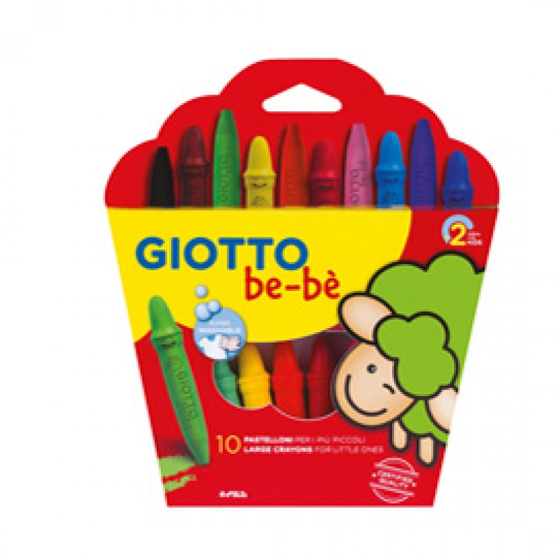 Pastelli cera super - lunghezza 7,5mm con Ø 11mm - colori assortiti - Giotto bebe - astuccio 10 superpastelloni