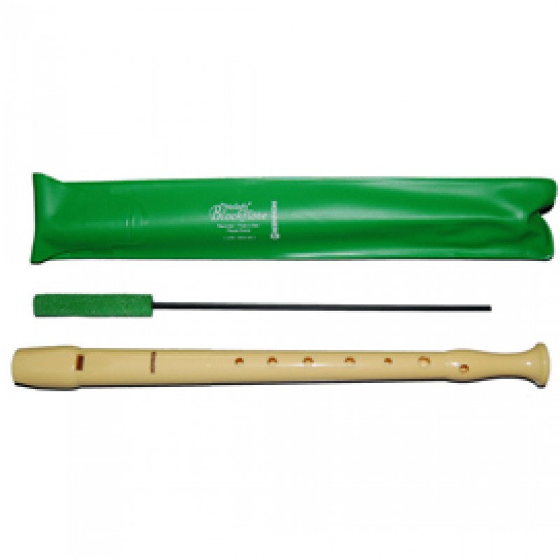 FLAUTO DOLCE IN RESINA, CORPO UNICO COLORE AVORIO. SOPRANO IN DO. DITEGGIATURA TEDESCA, 1 FORO. COMPLETO DI ASTINA PER LA PULIZIA E FODERINA IN SINTETICO VERDE.