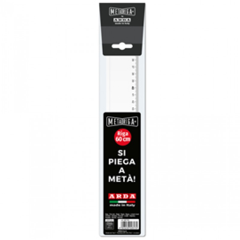 Riga pieghevole in materiale plastico. Smusso e tirachina. La soluzione geniale che risolve il problema delle righe che fuoriescono da zaini e cartelle. E' precisa e mantiene inalterate tutte le caratteristiche tecniche di una riga tradizionale. Confezionata in un pregiato astuccio.