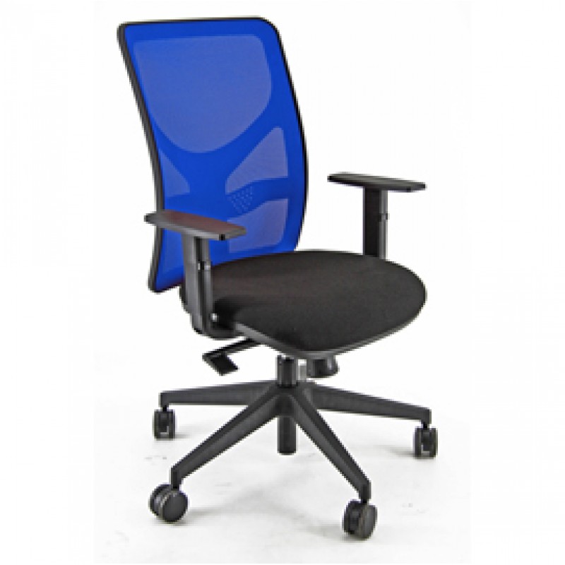 Seduta operativa adatta per uso standard/intenso. Schienale alto in rete colorata con supporto lombare regolabile. Rivestimento seduta in acrilico 100% colore nero. Braccioli regolabili e base in nylon. Meccanismo syncro con 4 blocchi. Meccanismo anti shock, meccanismo a contatto permanente. Elevazione a gas.