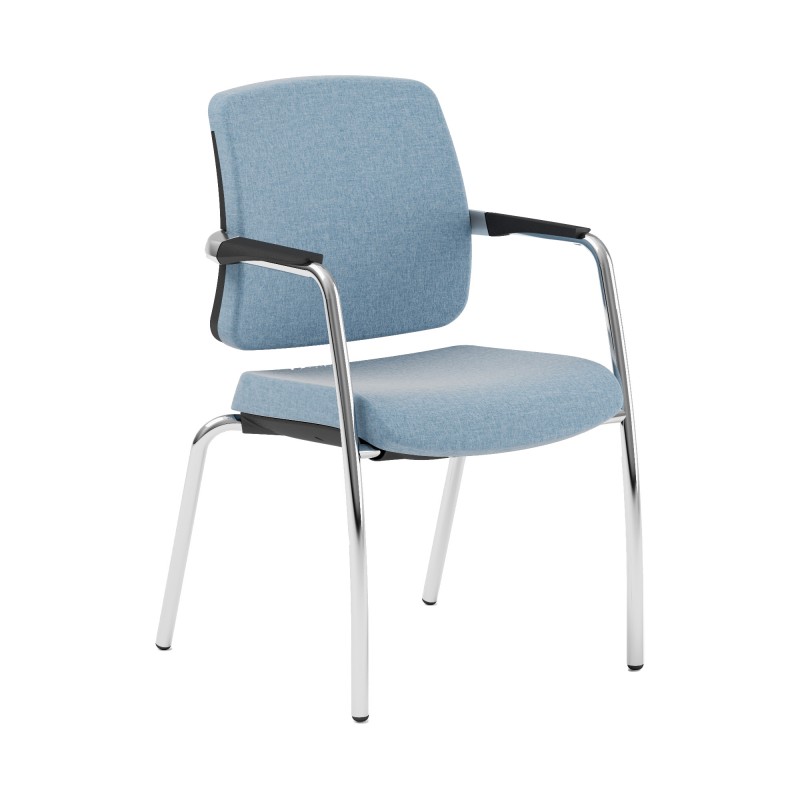 Seduta 4 gambe. Semidirezionale visitatore. Seduta fissa; Braccioli strutturali. Rivestimento seduta in tessuto "SUPER - King L" 100% TREVIRA reazione al fuoco classe 1. Braccioli inclusi (non rimovibili). Alt.tot.: 91cm; Prof.tot.: 58cm; Alt.schienale: 45cm; Larg.schienale: 44cm; Larg.seduta: 45cm; Prof.Sedile: 43cm; Altezza sedile: 43cm.