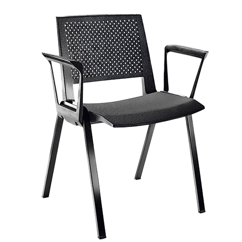 Seduta visitatore 100% polipropilene con struttura in acciaio nero - aggancio rapido a scomparsa - completa di braccioli fissi. Alt.tot: 80cm; Prof.tot: 57cm; Alt.schienale: 33cm; Largh.schienale: 47cm; Largh.sedile: 53cm; Prof.sedile: 40cm; Alt.sedile: 46cm. Certificazioni: EN 1022:2005; EN 1728:2000; EN 1573:2007.