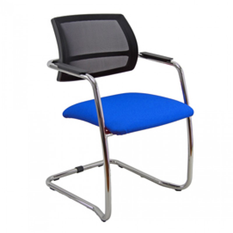 Seduta attesa su slitta impilabile a 2 cromata. Schienale in rete tessuto ignifugo.
