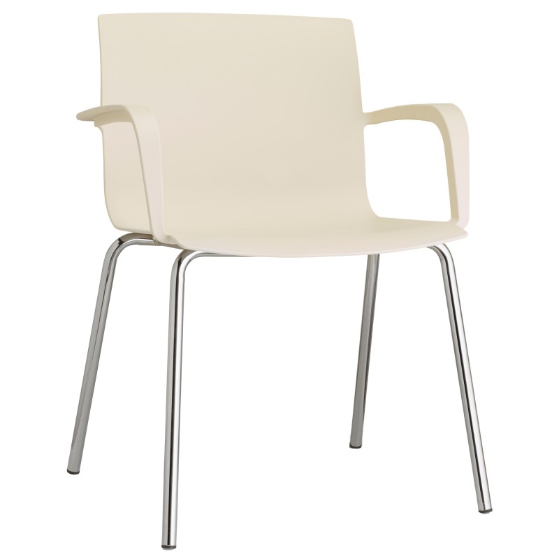 Seduta visitatore 100% polipropilene con 4 gambe struttura cromata - non impilabile - completa di braccioli. Alt. tot: 79cm; Prof.tot: 49cm; Alt.schienale: 37cm; Largh.schienale: 48cm; Largh. sedile: 48cm; Prof.sedile: 50cm; Alt.sedile: 44cm.