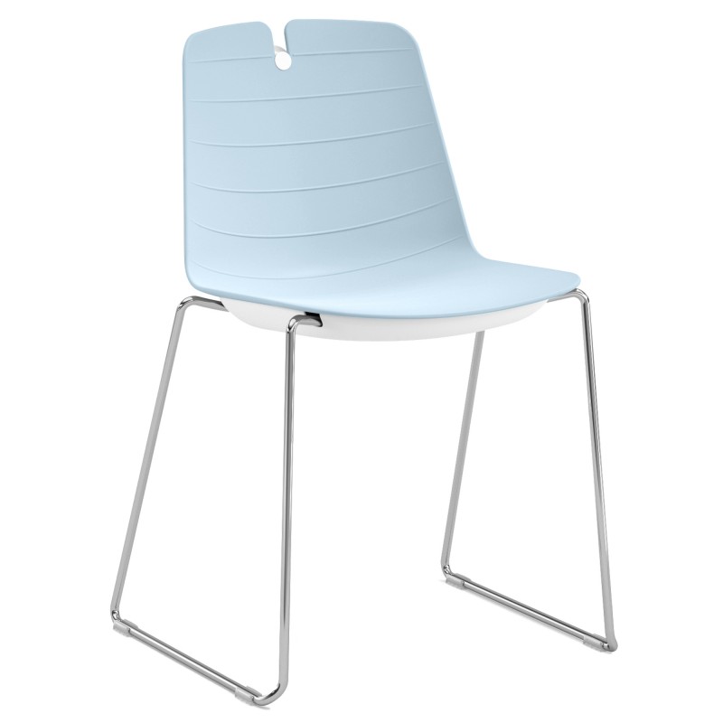 Sedia su slitta collettività/attesa 100% polipropilene - schienale fisso - bottone bianco - senza braccioli. Alt. tot: 80,5cm; Prof.tot: 52cm; Alt.schienale: 39cm; Largh.schienale: 45cm; Largh. sedile: 45cm; Prof.sedile: 38cm; Alt.sedile: 45cm.