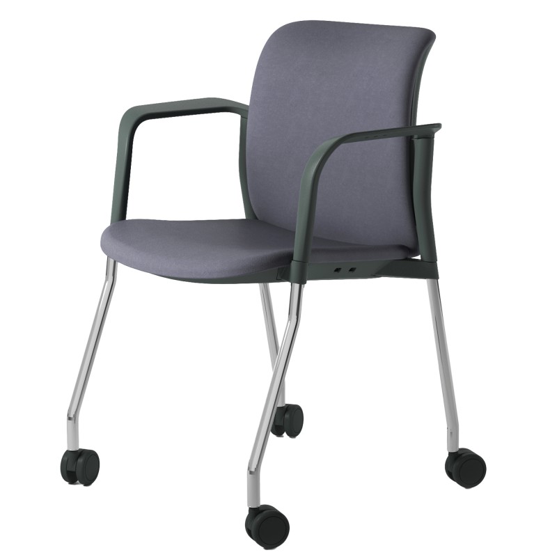 Seduta visitatore100% polipropilene con 4 gambe struttura cromata su ruote. Completa di braccioli. Rivestimento in tessuto "PLUS - Bondai" 100% poliestere no flame e certificazioni di infiammabilità 1.IM UNI 9175. Alt. tot: 82cm; Prof.tot: 52cm; Alt.schienale: 40cm; Largh.schienale: 42cm; Largh. sedile: 45cm; Prof.sedile: 47cm; Alt.sedile: 46cm. Certificazioni: EN 16139: 2013.
