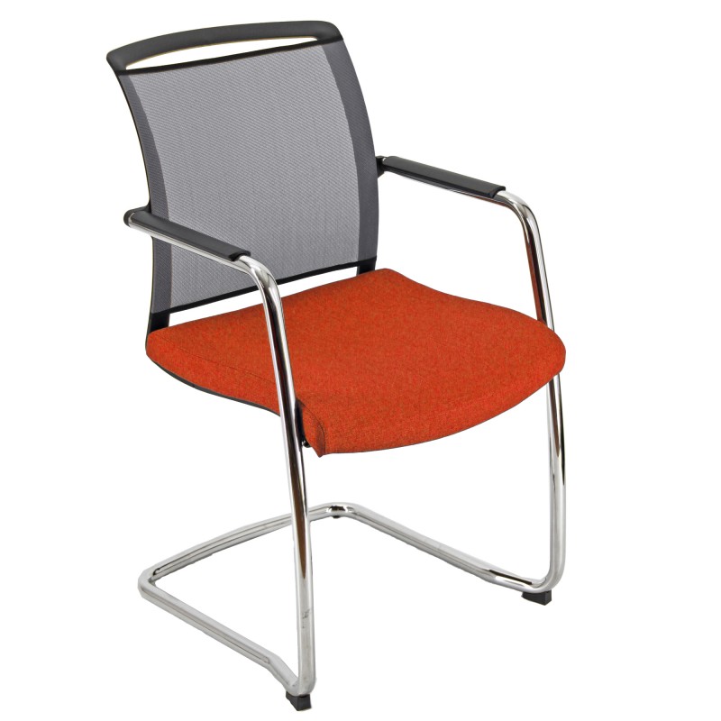 Seduta interlocutore con struttura cromata e imbottitura ad alta densità. Rivestimento seduta in tessuto SUPER - King L 100% TREVIRA reazione al fuoco classe 1. Braccioli inclusi (non rimovibili). Alt.tot.: 89cm; Prof.tot.: 62cm; Alt.schienale: 49cm; Larg.schienale: 45cm; Larg.seduta: 45cm; Prof.Sedile: 45cm; Alt. sedile: 49cm.