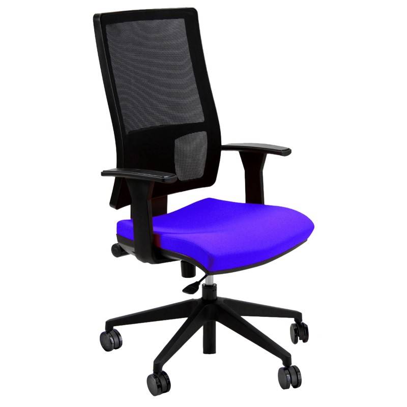 Seduta operativa girevole - elevazione a gas - meccanismo Syncro - 4 blocchi anti shock - meccanismo a contatto permanente - regolazione schienale up-down. Rivestimento seduta in tessuto "ECO- Eco" 100% polipropilene. Completa di braccioli regolabli. Alt.tot.: 110-122cm; Prof.tot.: 68cm; Alt.schienale: 61cm; Larg.schienale: 45cm; Larg.seduta: 50cm; Prof.Sedile: 46cm; Alt. sedile: 42-54cm.