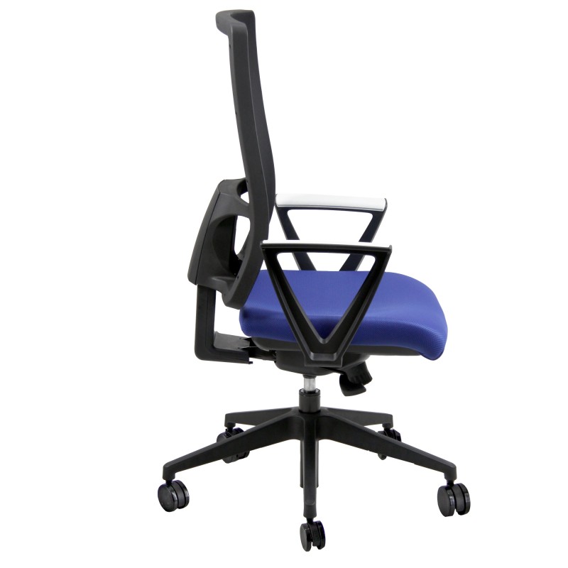 Seduta operativa girevole - elevazione a gas - meccanismo Syncro - 4 blocchi anti shock - meccanismo a contatto permanente - regolazione schienale up-down. Rivestimento seduta in tessuto "ECO- Eco" 100% polipropilene. Completa di braccioli fissi. Alt.tot.: 110-122cm; Prof.tot.: 68cm; Alt.schienale: 61cm; Larg.schienale: 45cm; Larg.seduta: 50cm; Prof.Sedile: 46cm; Alt. sedile: 42-54cm.