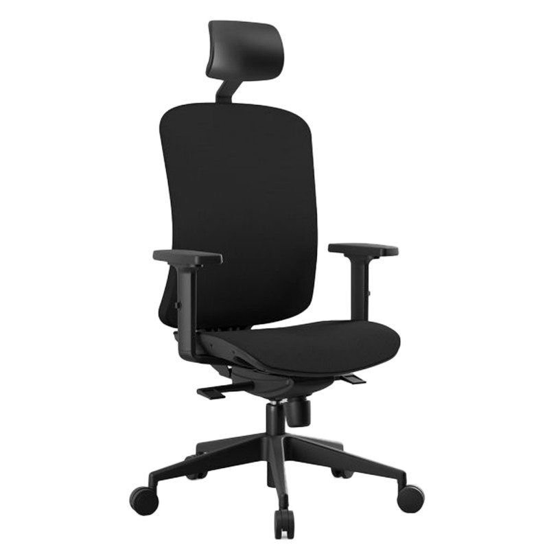Sedia girevole su ruote con sedile in rete portante e schienale in rete nera, elevazione a gas. Supporto lombare regolabile, meccanismo syncro tra sedile e schienale, a contatto permanente. Schienale con ritorno controllato con 4 blocchi antishock. Sedile dotato di traslatore (avanti e indietro). Completa di braccioli regolabili e poggiatesta. Alt.tot: 120-132cm; Prof.tot: 68cm; Alt.schienale: 60cm; Largh.schienale:47cm; Largh.sedile: 48cm; Prof.sedile: 46cm; Alt.sedile: 40-52cm.