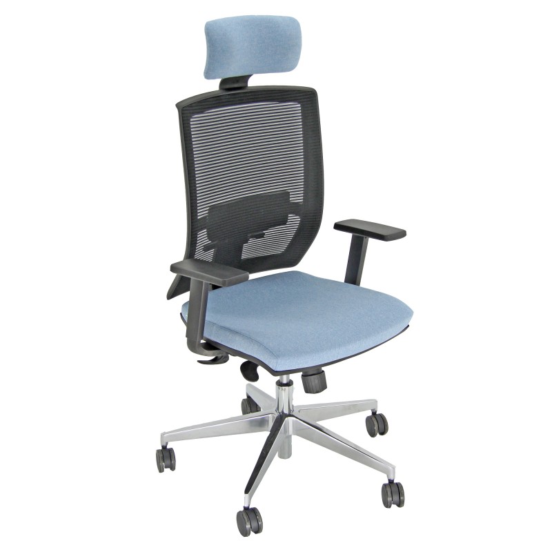 Poltrona semidirezionale Clotilde CTAPG - con braccioli regolabili e poggiatesta - celeste - Unisit