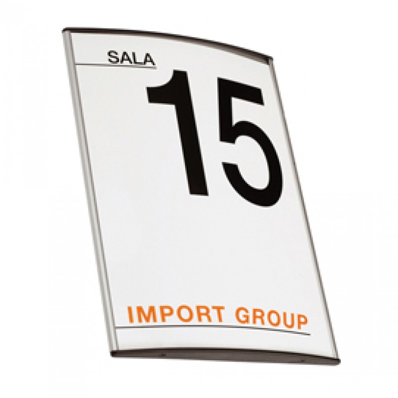 Elegante design dalla forma convessa. Realizzato in alluminio estruso e corredato di appositi terminali di chiusura in materiale plastico nero. protezione in pvc antiriflesso. Puo' essere utilizzato sia in verticale che orizzontale. Infinite le combinazioni possibili. La grafica e i messaggi da inserire sono realizzati dall'utente stesso in carta o cartoncino, mediante l'uso del pc, in totale autonomia. Si ottengono in questo modo notevoli risparmi gestionali rispetto ai sistemi segnaletici usati fino a ora