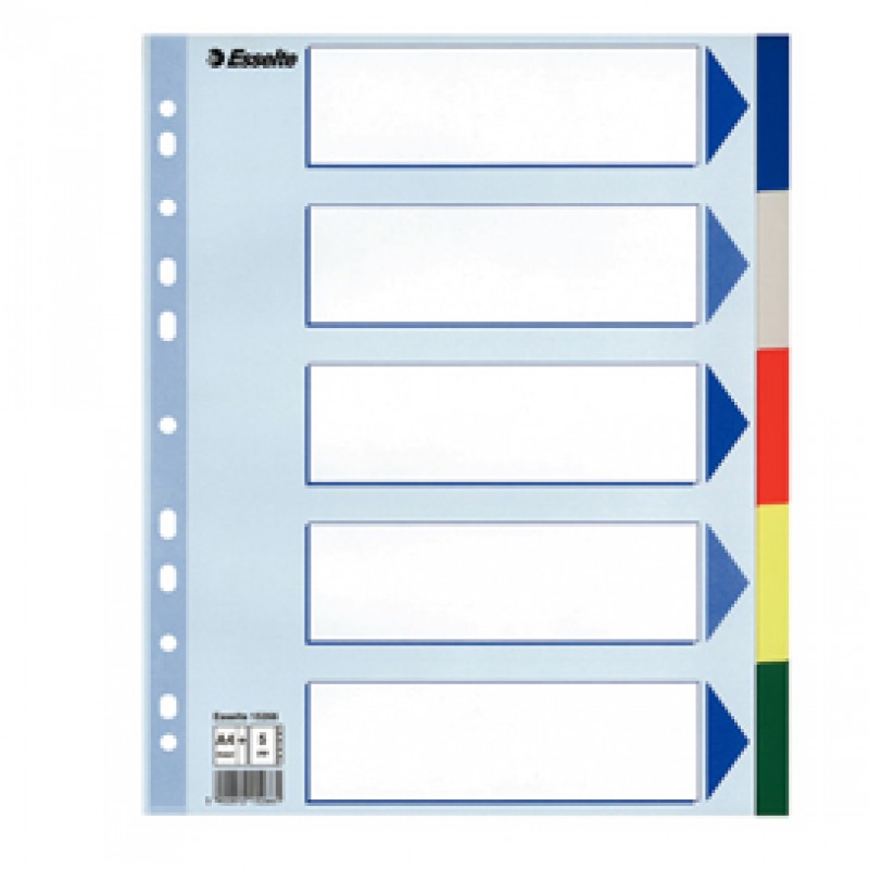 Separatore - 5 tasti colorati - PP - A4 maxi - 24,5x29,7 cm - multicolore - Esselte