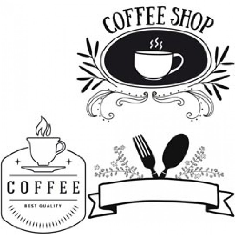 SET STENCIL a tema cibo e bevande, ideali per decorare le vetrine. Fogli in carta dimensione A2.