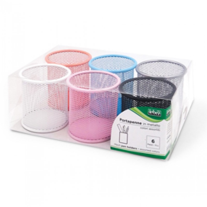 Bicchieri portapenne - rete metallica colorata - 8,5x10 cm - Lebez - conf. 6 pezzi
