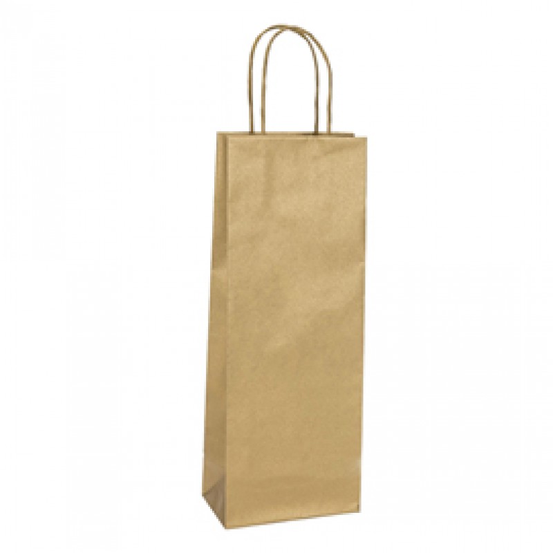 Portabottiglie BARBERA - maniglie cordino - 14 x 9 x 38 cm - carta biokraft - oro - Mainetti Bags - conf. 20 pezzi