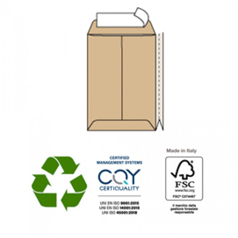 Busta a sacco Multi Strip Large - soffietti laterali - strip adesivo - 23 x 33 x 4 cm - 100 gr - carta riciclata FSC - avana - Pigna Envelopes - conf. 250 pezzi