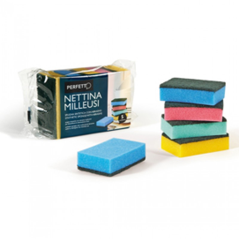 Spugna nettina Milleusi - 11x6,5x3 cm - doppio strato - colori assortiti - Perfetto - conf. 5 pezzi