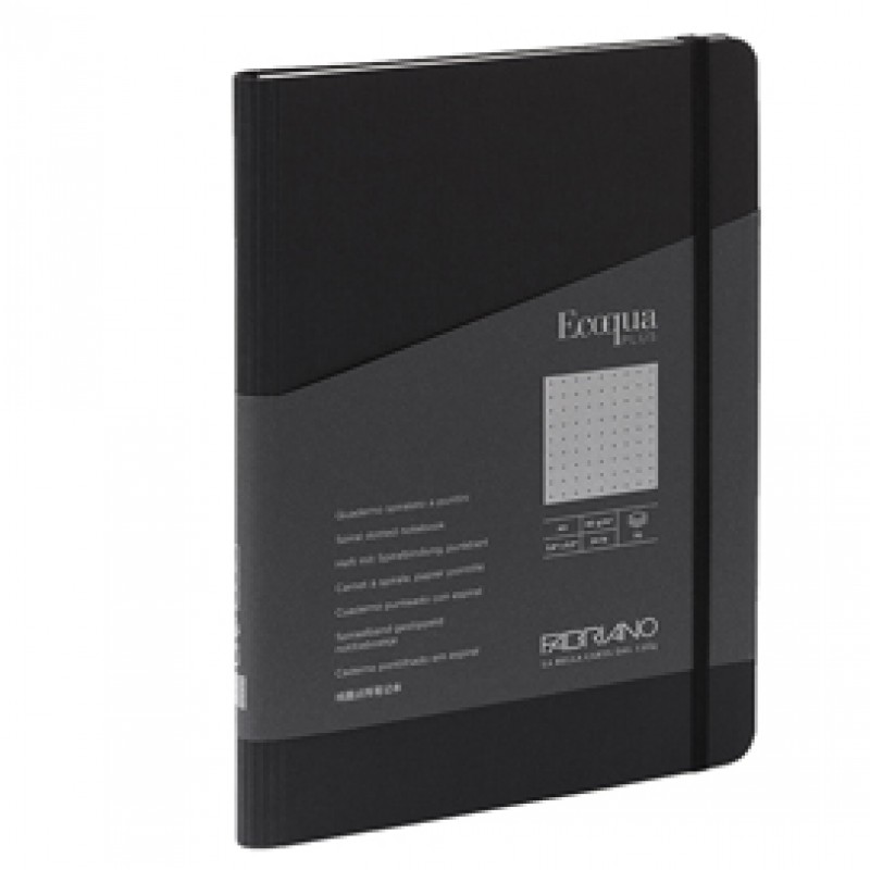 Taccuino EcoQua Plus - con elastico - spiralato - A5 - 70 fogli - puntinato - nero - Fabriano
